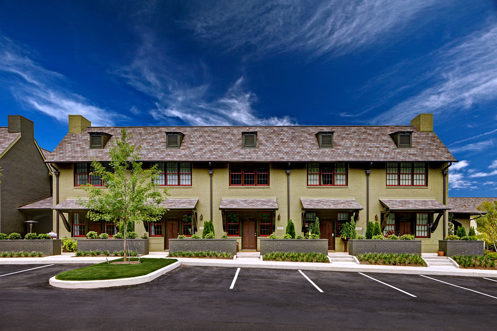Edenton Village, a mixed-use townhouse and office-condo development in suburban Birmingham, had great success with 205 residential sales, but its 43,000 SF of office/retail space struggled. The developer tasked Nequette to convert the village center into residential use to salvage the project. With financing constraints due to condominium status, the design goal became a $150k sales price, requiring a yield of 100 units.
